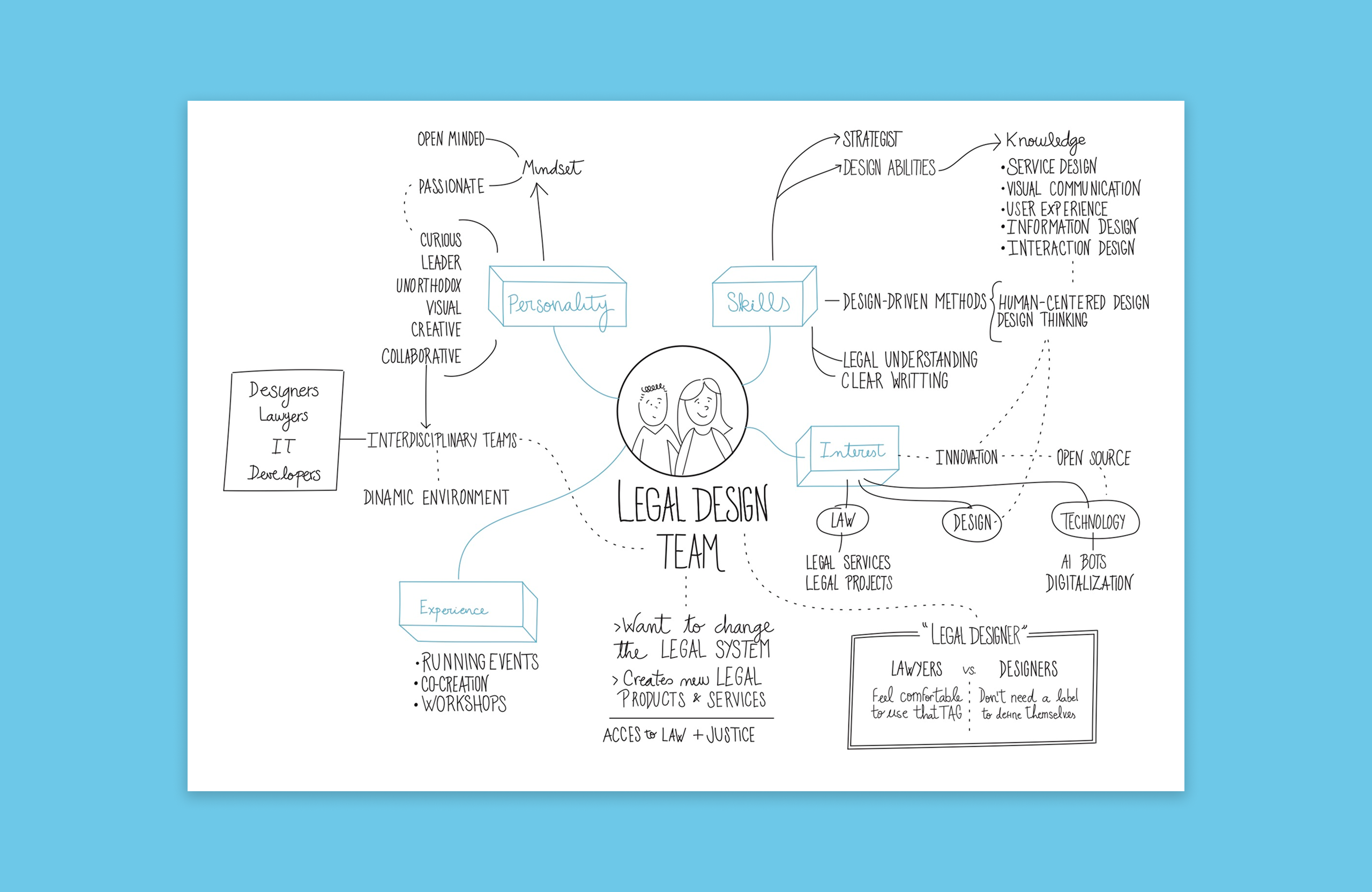 Mind map of what is a Legal Designer based on the insights gather from interviewing experts.